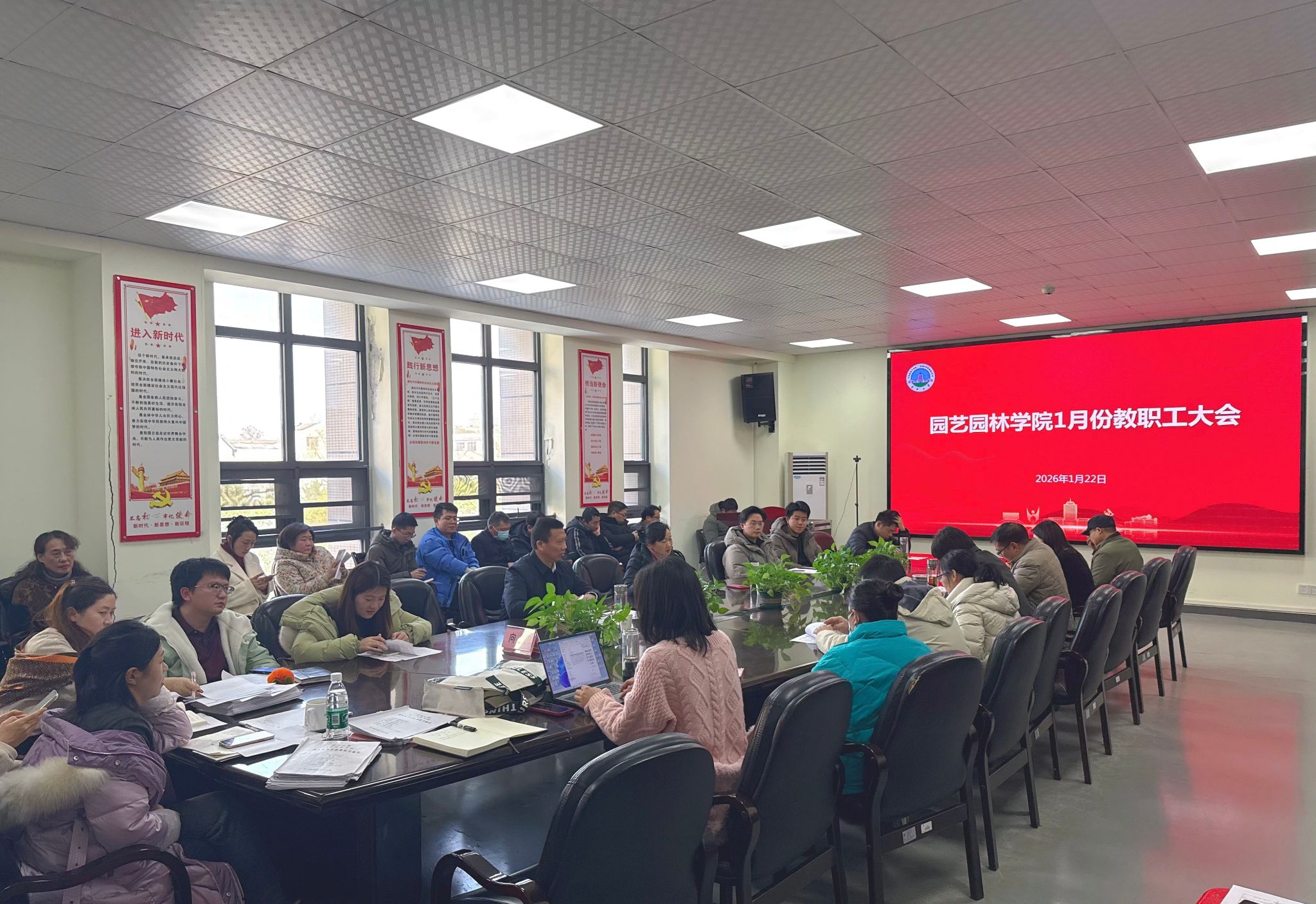 (通讯员 吕泽芳)1月22日下午,我院在农科大楼3002A会议室召开1月全体教职工大会暨政治理论学习会,全面总结2025年度学院工作,系统部署寒假及近期重点任务,凝聚全院共识,明确工作方向。会议由院长周明芹主持,学院全体教职工参加。