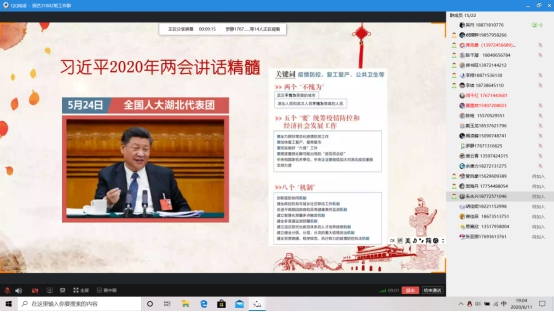 我院老师学生十分重视此次团会活动,各团支部积极响应学校号召,根据各自班级实际情况进行精心策划与前期筹备,按时积极地开展了此次活动,同学老师热情高涨,积极参与。各支部结合自身实际情况主要围绕四方面开展团会活动:一是贯彻两会精神,深入学习习近平总书记在4个团组参加讨论审议时的发言,具有极强的前瞻性、针对性、指导性,并引导学生热议政府工作报告、聚焦两会热点等,实现全面宣讲两会精神;二是开展“共抗疫情、爱国力行”主题教育,同学们围绕疫情防控分享体会感悟,传播健康理念,对学生进行生理和心理疏导;三是开展诚信主题教育,引导学生将“诚信”带入学习与生活全过程,坚持以真才学识面对考试与人生;四是开展“学习监察法,争做廉洁人”主题教育,学习制定监察法的重要意义、起草过程、指导思想、基本思路以及主要内容,并组织观看《学习监察法,争做廉洁人》专家视频讲座以及完成《中华人民共和国监察法》知识测试环节。