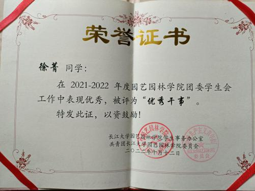 杨言、徐菁获2021-2022年度威廉williamhill团委学生会优秀干事 |