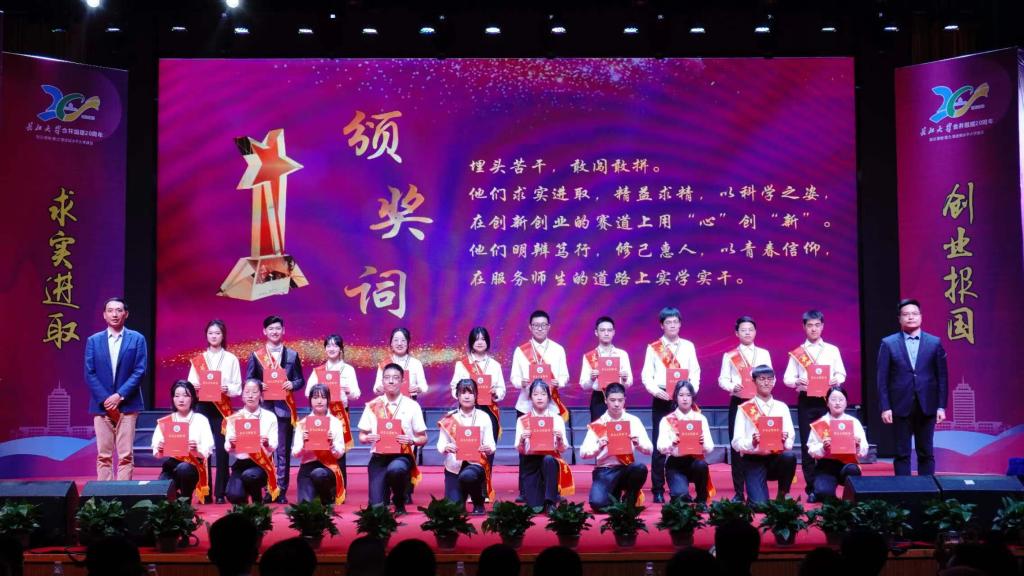 校领导依次为“学习之星”“创新之星”“学干之星”“自强之星”等13类“长大之星”颁奖。全体“长大之星”登台表演《向光而行》,以青春之姿共同书写成长答卷。同时,本届“十佳之星”现场揭晓,获得者分别是谢敏、焦立群、孙泳、毛振豪、范海璐、王圣夹、何情、孟宪锦弘、周承运、熊佳文。