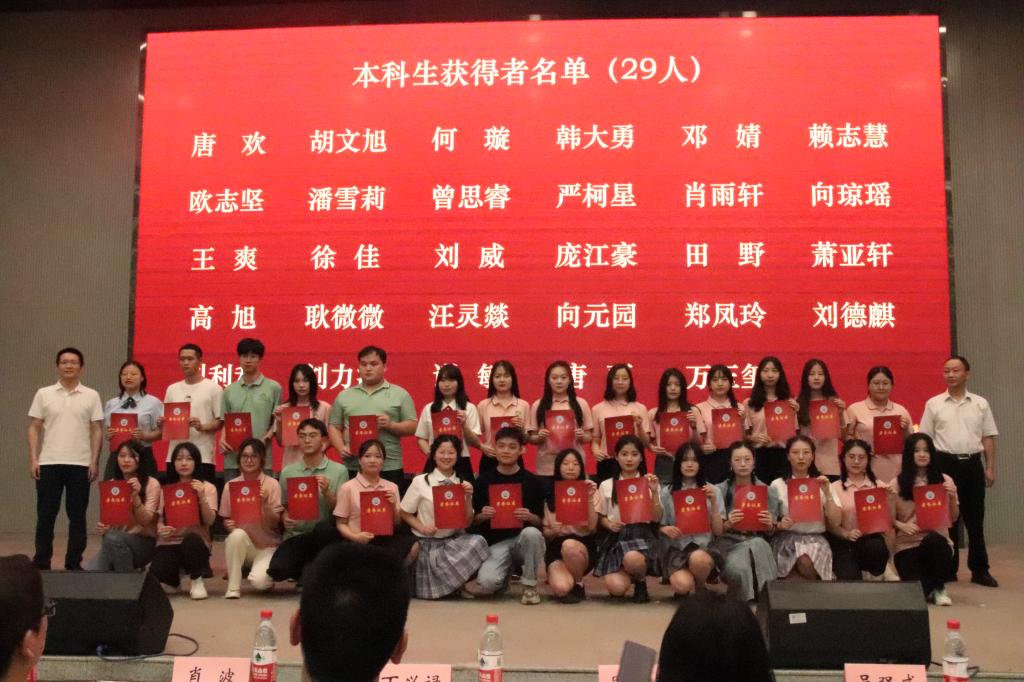 仪式第四项是考研先进个人表彰。平先锋宣读表彰文件,肖波、刘志雄、姚振、张威威为考研先进个人颁发荣誉证书。