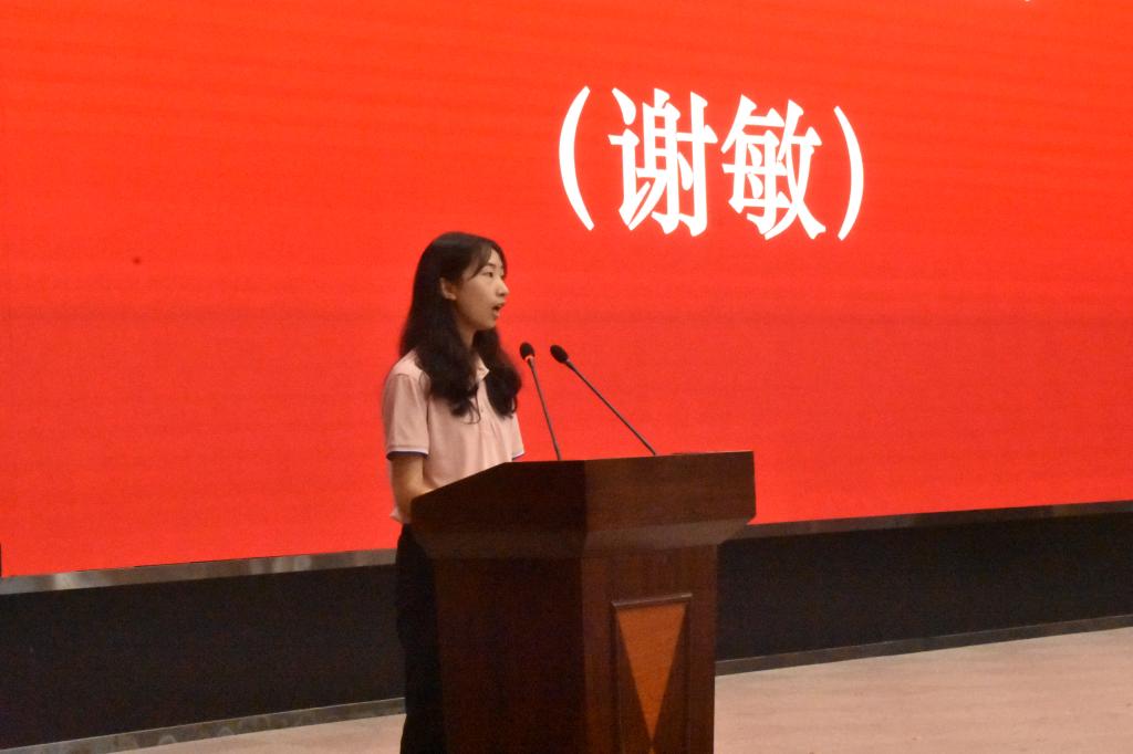 仪式进入第六项,学生代表发言。由本科毕业生代表谢敏和硕士毕业生代表李英杰发言。他们代表毕业生们表达对学校和老师们教导的感恩,并表示会在未来新的领域接续奋斗,不忘师恩,砥砺前行。