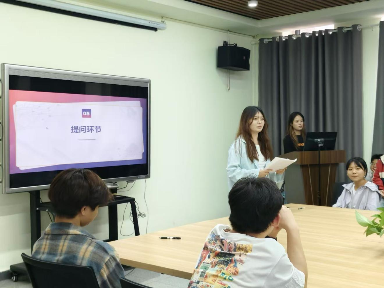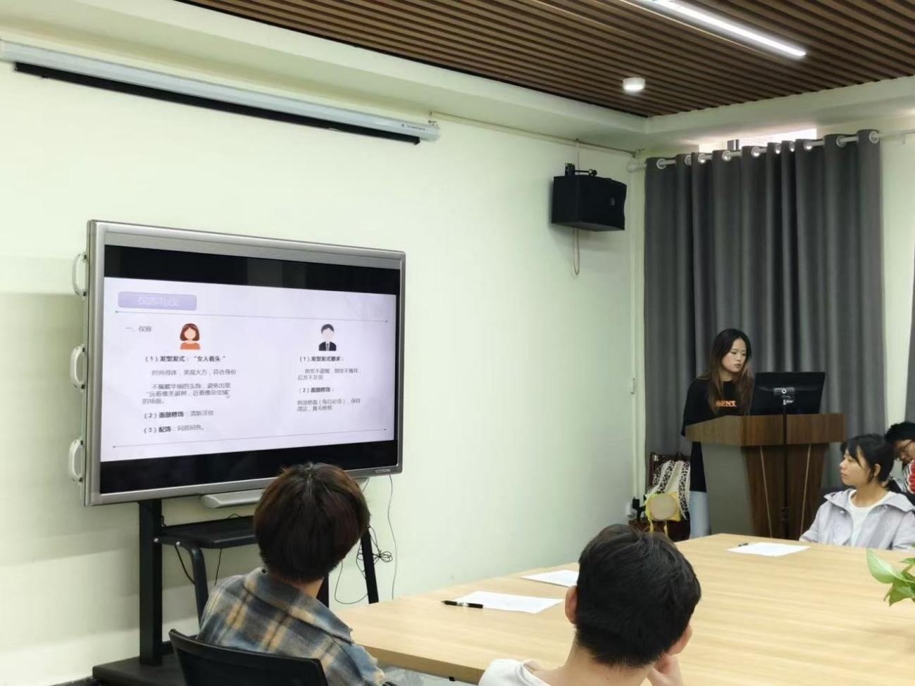 闫子玉就邵翔讲述的礼仪知识,对同学们进行礼仪小知识的随机提问,在增添会议趣味性的同时,进一步加深同学们的理解记忆。