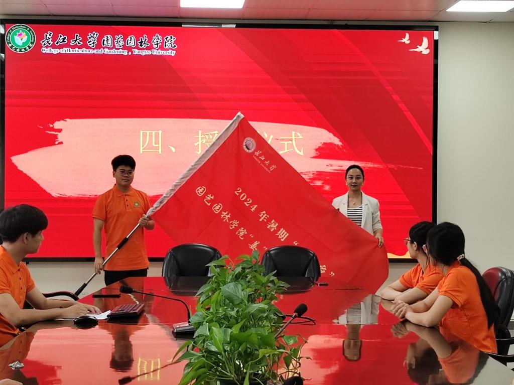 授旗仪式上,黄仙为暑期三下乡团队授予旗帜。