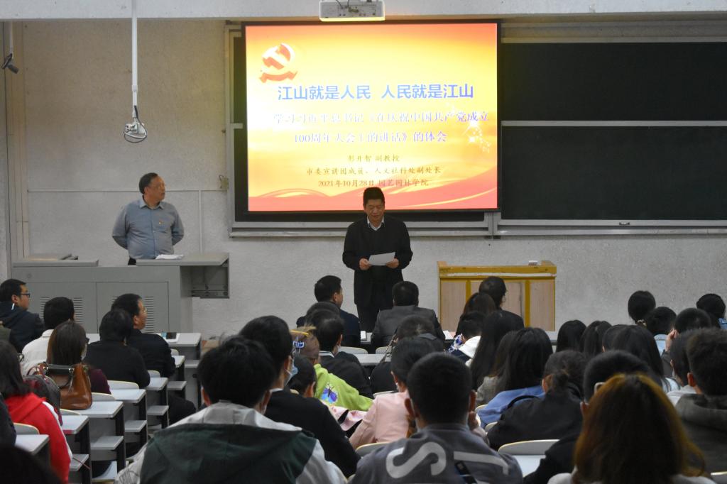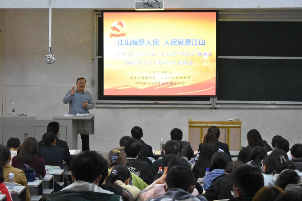 (通讯员:牟静雯 胡淑涵)为加强党的领导,贯彻习近平总书记“七一”重要讲话精神,2021年10月28日14:30分,威廉williamhill院在5教103开展学习贯彻习近平总书记“七一”重要讲话精神专题宣讲会,此次会议由市委宣讲团成员、人文社科处副处长彭开智副教授主讲,威廉williamhill全体教职工、学生党员和入党积极分子、学生干部、学习小组成员等参加了会议,会议由学院党委书记丁兴禄主持。
