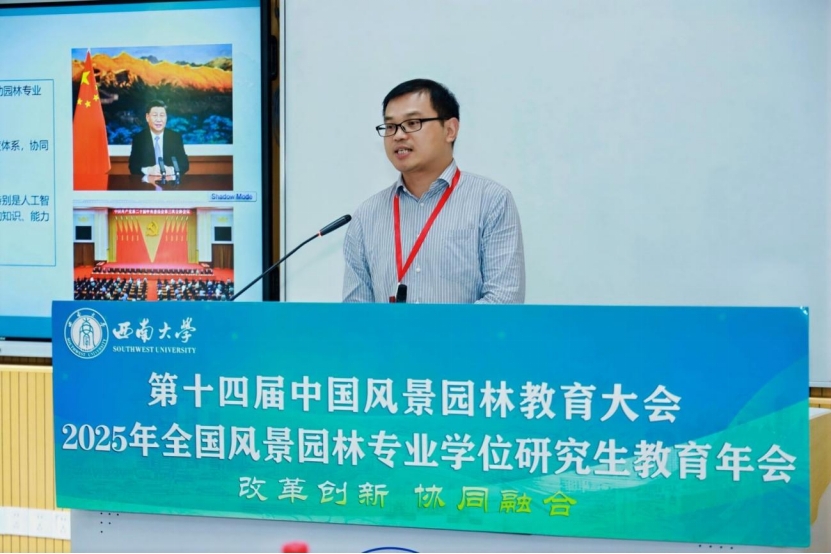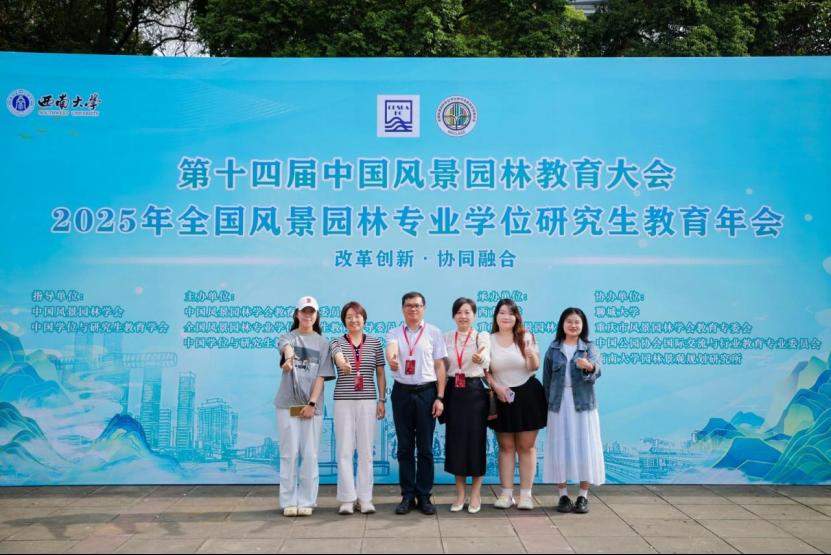(通讯员 何文静)9月26日—28日,由中国风景园林学会教育工作委员会、全国风景园林专业学位研究生教育指导委员会、中国学位与研究生教育学会风景园林专业学位工作委员会联合主办的第十四届中国风景园林教育大会暨2025年全国风景园林专业学位研究生教育年会在重庆西南大学(北碚校区)举行。本次大会以“改革创新,协同融合”为主题,精准把握了新时代风景园林教育事业发展的核心要求,共同探讨未来风景园林教育事业的创新发展之路。我院肖国增副院长、郭晓华副教授、王万喜副教授等5名师生参加了会议。肖国增、郭晓华分别以《基于“三观五美”理念的园林专业人才培养模式研究与实践》《美好城乡·共同缔造——“五共”路径下的<园林综合设计>实践》为题作分论坛报告。