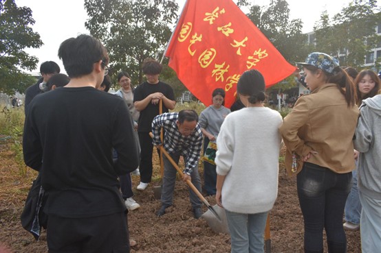 (通讯员 代阳光)为落实学校“五育并举”要求,培养学生劳动精神,11月13日下午,我院教学实践基地里红旗招展、热火朝天,一场以“秋播·收获”为主题的新生劳动教育在此开展。学院领导、指导教师、班主任、辅导员来到现场,与新生们一同拿起锄头铁锹翻地、分拣种子、挖坑播种。师生们挽起衣袖、脚踩泥土,在劳动中感受农业的温度与意义,在田间地头深化专业认知。