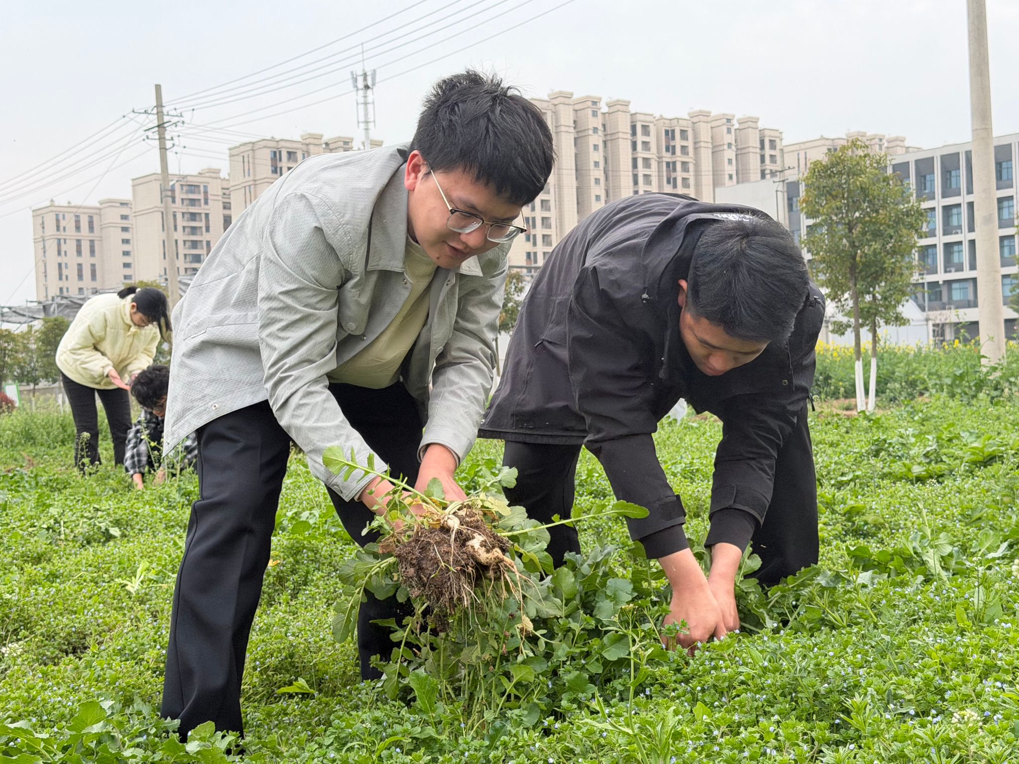 (通讯员 吴山)春风送暖,硕果盈枝。3月12日下午,学院领导与师生代表共同前往劳动教育基地,采收去年深秋播下的希望。萝卜饱满、白菜青翠,大家满怀喜悦投身田间收获,在躬耕劳作中真切体悟“一分耕耘,一分收获”的价值真谛,也为持续数月的劳动教育实践画上圆满句号。