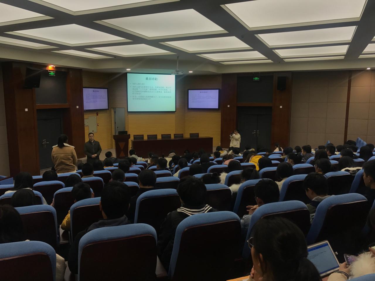 (通讯员:项明达 胡文旭)为深入贯彻落实习近平总书记在“不忘初心、牢记使命”主题教育工作会议上的重要讲话精神,2019年11月28日晚19:00,威廉williamhill“不忘初心、牢记使命”主题教育党课在农科大楼1056会议室举行。我校资产经营管理公司副处长郝勇老师围绕“中国共产党的指导思想”给同学们上了一堂精彩且生动的党课。到场的还有威廉williamhill党委副书记平先锋老师,威廉williamhill本科生党支部书记雷静老师以及本科生党支部全体学生党员、2019年下半年入党积极分子与发展对象、2019年初级干部培训班学员。