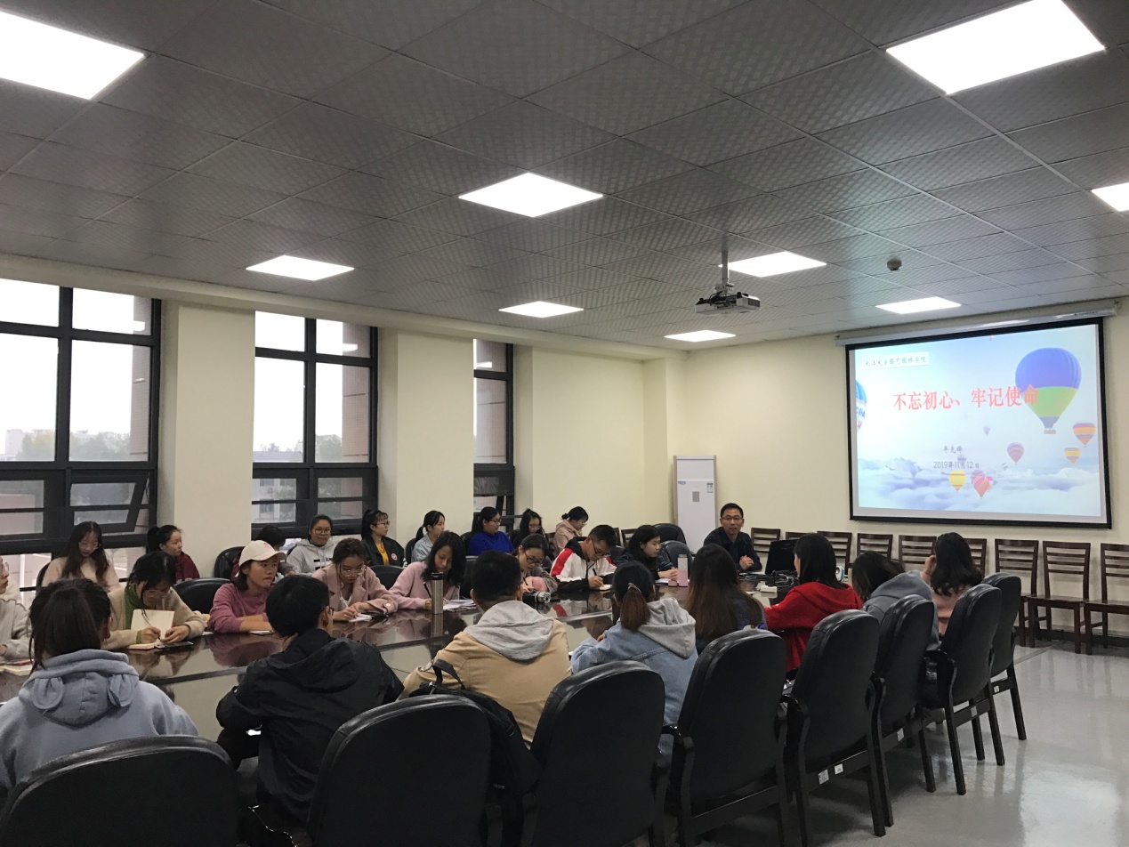 (通讯员:古青玉 黄欣茹)为深入贯彻落实习近平总书记在“不忘初心、牢记使命”主题教育工作会议上的重要讲话精神,2019年11月12日下午3:50,威廉williamhill“不忘初心、牢记使命”主题教育党课在农科大楼3002会议室开展。学院党委副书记平先锋围绕“不忘初心、牢记使命”给同学们上了一堂生动精彩的党课。到场学习的同学有威廉williamhill本科生党支部全体学生党员、2019年下半年入党积极分子与发展对象、学生会主要学生干部。