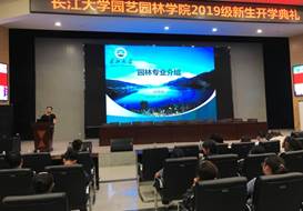 接下来的议程为专业介绍,首先上台发言的是风景园林系主任肖国增老师,他向同学们介绍风景园林专业的学科范畴、就业去向与职业类别、专业办学条件,并就近几年行业的前景对专业的发展历程做了详细的分析,同时向学生展示了往届学生作品,对在场的同学提出了殷切希望。之后由茶学系主任赵振军老师向同学们详细介绍了茶学专业的基本情况、办学资源以及就业方向,同时列举了几位茶学专业的优秀校友事迹,令同学们啧啧称赞。随后,园林系主任张威威老师紧接其后,详细介绍了园林专业的教学平台与师资力量以及良好的学术氛围,以及本专业的培养计划和对未来的展望。副院长肖波副教授就园艺专业的含义、培养目标、教学计划与学科内容展开详细的解说,让新生们耳目一新,豁然开朗。