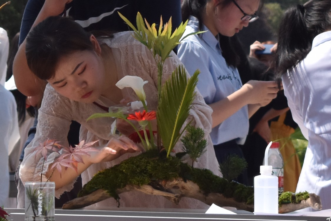(学生记者 何艺伟)迎百年“五四”,创长大新风。5月11日上午9时许,西校区一教广场百花争艳,以“红色青年,绿色青春”为主题的第十一届插花花艺技能竞赛在此举行。