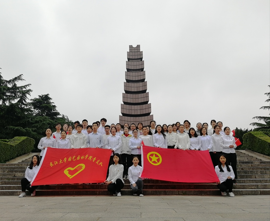 本科生党员和青支队成员在荆州市烈士陵园合影留念