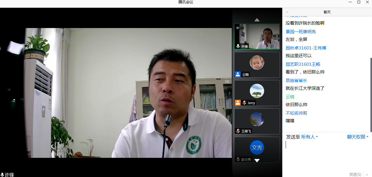最后,许锋做总结发言。第一,疫情防控时期的毕业季,虽少了学位授予、合影留念的仪式感,但师生情谊、同学情谊丝毫不减;第二,院学工和各部门严阵以待,做好充足准备,欢迎大家返校。希望大家按照学校要求,遵守校纪校规,完成返校程序。第三,祝福即将成为校友的伙伴们,前程似锦、大展宏图,欢迎常回母校看看。
