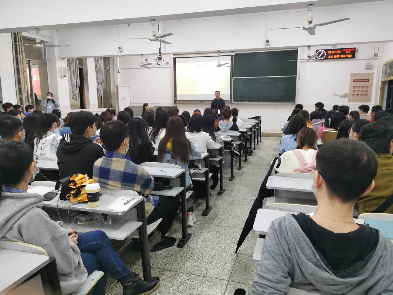 会议的第二阶段,学硕和专硕班级的同学分别进行班委竞选。此次竞选秉承公正、公平、公开的原则,在王娟老师的主持和全体学生的监督下开展。本次竞选得到了同学们的大力支持和积极参与,各位候选人轮流登台发表竞选演讲,通过演讲来展示自身优势、阐述自己对班级工作的规划,向同学们做出目标和承诺。候选人演讲结束后,同学们为自己信任的班委候选人投票,所有在场的同学现场匿名投票,现场公开唱票,经投票表决最终选拔出了以张梦迪、王梁飞同学为代表的20级硕士研究生班干部集体。