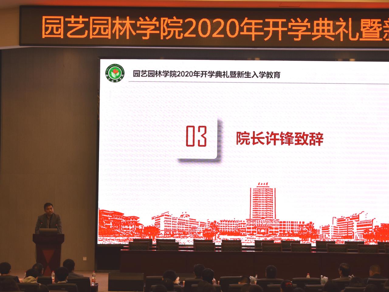 会议分三阶段进行,第一阶段开学典礼在庄严的国歌中拉开帷幕。许锋代表全体师生向各位新同学的到来表示热烈的欢迎,并介绍了学院的发展史、师资力量及专业特色。他表示,2020年是我们生命中极不平凡的一年,在灾难面前,我们初心不改,自律勤勉与国家和民族一同进步成长,交出了一份满意的答卷。希望广大新生时刻保持强烈的探索意识和坚韧的探索精神,努力提升自己以更好地适应国家和社会发展的需要。