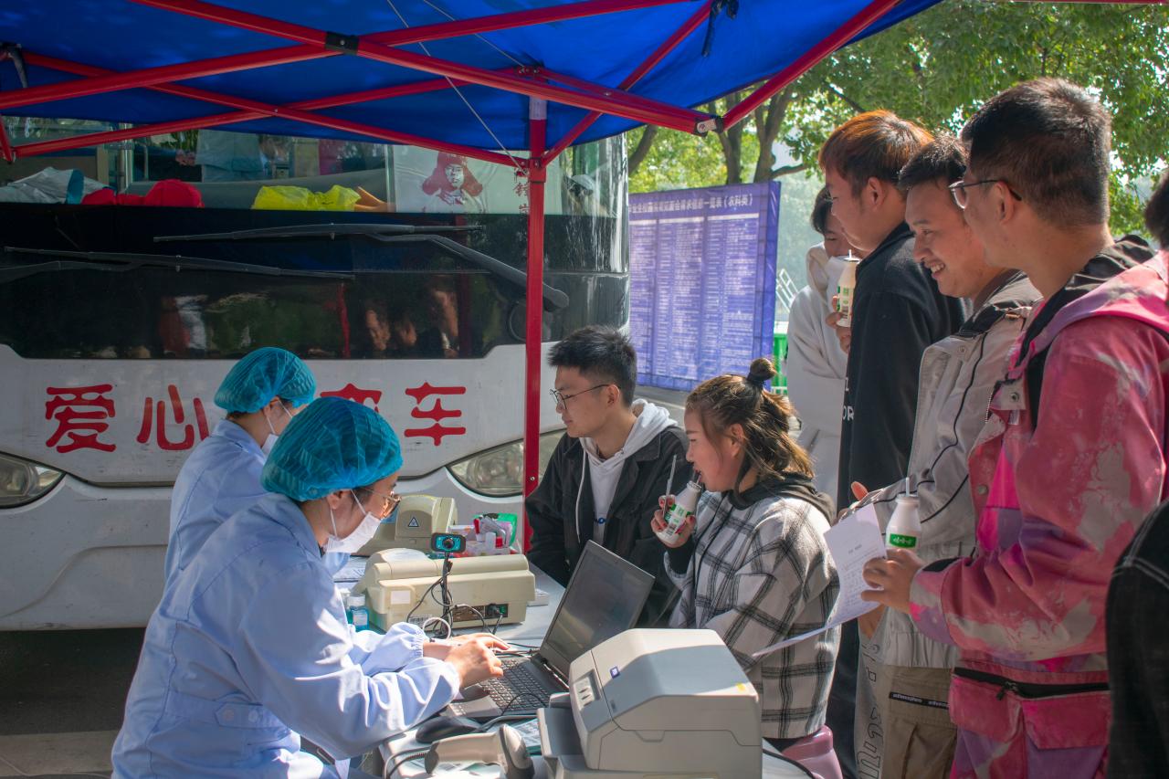 (通讯员:李攀 赵宇 陈明)为预防今年秋冬季节疫情反弹,保障血液资源供应,发扬无私奉献的精神。同时,为了培养青年学子的奉献意识和服务意识,威廉williamhill青支队和荆州市中心血站工作人员联合发起了以“热血战疫,你我同行”为主题的无偿献血活动。本次活动由全体青支队成员共同组织开展,于william威廉中文西校区风华园主干道举办。2020年10月29日上午10时,青支队志愿者和荆州市中心血站工作人员准备就绪。广大学子积极参与,一股无偿献血的爱心热潮在长大校区内澎湃而起。本次献血活动中,献血流程规范,医务人员专业,志愿者们实时维护现场秩序,轮流为同学们服务,组织献血同学依次进行信息登记、血液类型检验、静脉采血等相关准备工作。