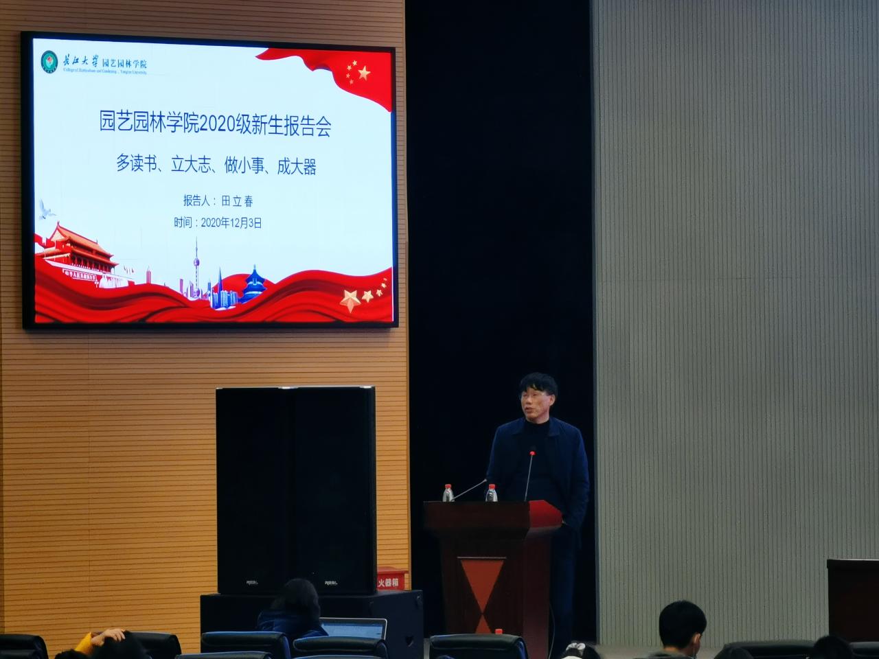 (通讯员:龙睿宇 严柯星)2020年12月3日,威廉williamhill在农科大楼1058报告厅开展了以"多读书、立大志、做小事、成大器"为主题的2020级新生报告会。此次报告会由党委组织员田立春处长作为报告人,全体2020级研究生和本科生参加了会议。会议由学工办主任彭文秀主持。