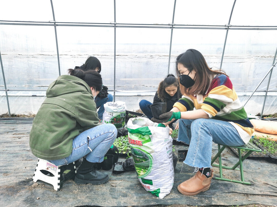 在观赏园艺实习的同时,同学们也不落下蔬菜的播种、移栽。看到毫无下地干活经验的同学们在蔬菜地里挥着锄头、铲子,蔬菜实习指导老师饶贵珍教授笑着说:“学生们的热情都很高,但是由于缺乏经验,大部分同学对于栽培管理以及种植手段,理解还停留在书本知识上。”为了让同学们真正学会种地,真正将书本知识运用于实践,真正掌握园艺植物栽培种植技巧,饶贵珍教授根据自己几十年的实践教学经验,手把手教同学们挖地、移栽、浇水、施肥以及中耕松土。进行生产实习是辛苦的,在劳累了一整天之后,18级园艺专业的昝天祥发出感叹:“‘种豆南山下,草盛豆苗稀,晨兴理荒秽,带月荷锄归。’我现在深刻理解了这两句诗的内涵。”