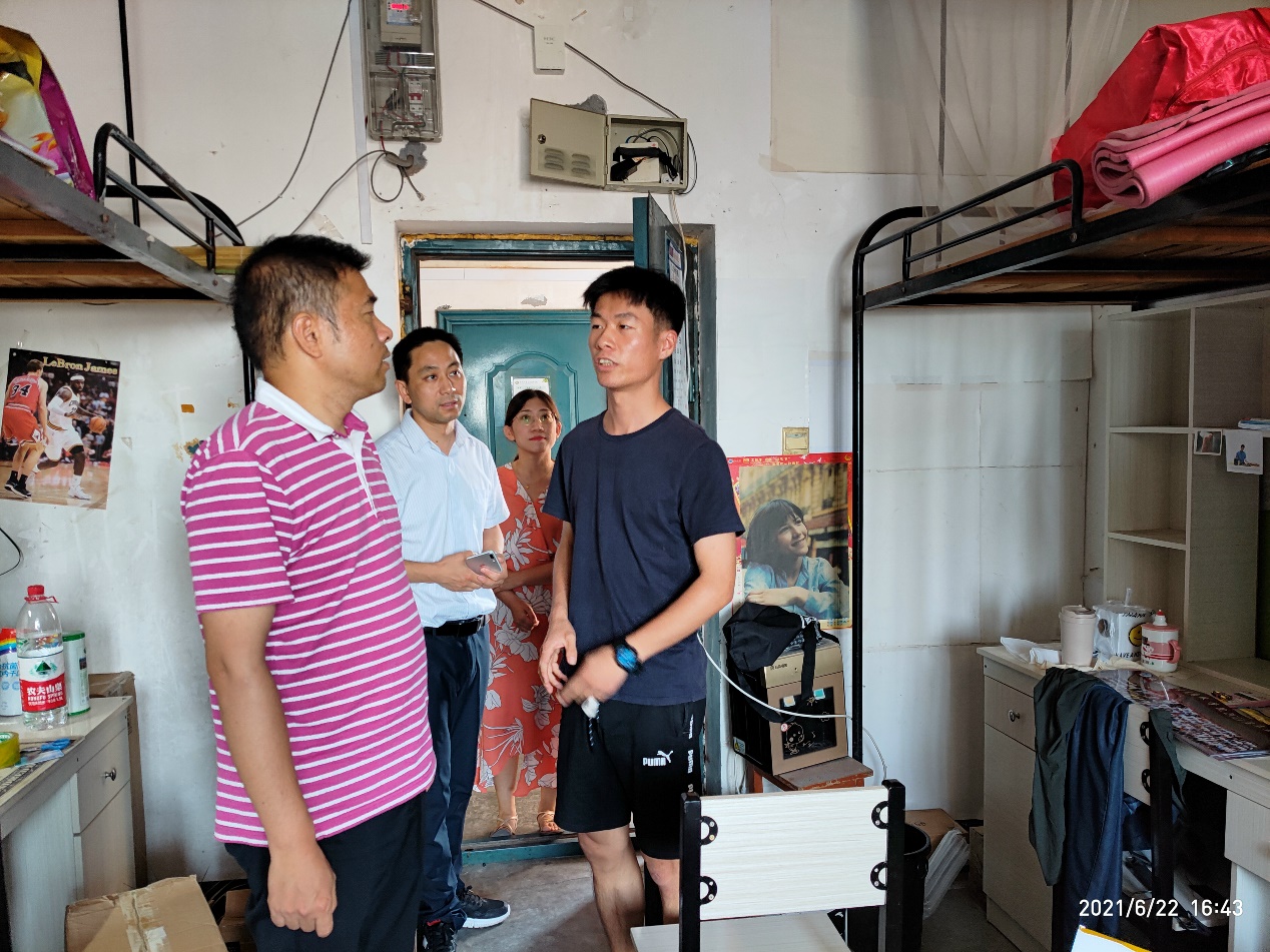(通讯员:章崇烁 彭文秀)6月22日下午,威廉williamhill院长许锋、党委副书记平先锋、学工办主任彭文秀、毕业生年级辅导员吴山等老师走访毕业生学生寝室,详细了解毕业生学习、生活、就业和思想情况,加强毕业生安全教育,引导毕业生文明离校。