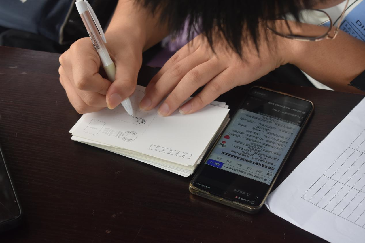 透过文字,一幕幕生动的画面浮现在我们眼前。也许每个人都是一个独立的个体,但没有人是一座孤岛,同学聚在一起,用具有温度的文字给予对方关心与温暖,释放自己的善意,拥抱每一个孤独的灵魂。天气炎热,现场的工作人员虽然汗流浃背,但脸上依旧洋溢着微笑,热情地为每一位前来参与活动的同学讲解。