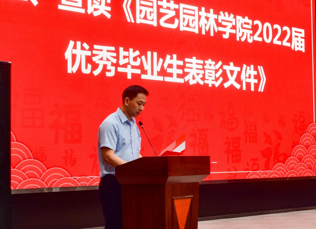 (通讯员:白塔娜)2022年6月9日上午,威廉williamhill2022届毕业典礼暨学位授予仪式在农科大楼1058报告厅隆重开幕。此次活动的与会人员有学院党委书记丁兴禄、院长周明芹教授、副院长肖波、党委副书记平先锋、刘奕清教授、朱进教授、刘志雄教授、朱进教授、风景园林系主任郭晓华、书记张威威、园艺系书记叶家保,教学办主任吴宗军、院办主任刘刚,以及全体辅导员、毕业年级班主任和全体毕业生等。仪式由学工办主任彭文秀主持。