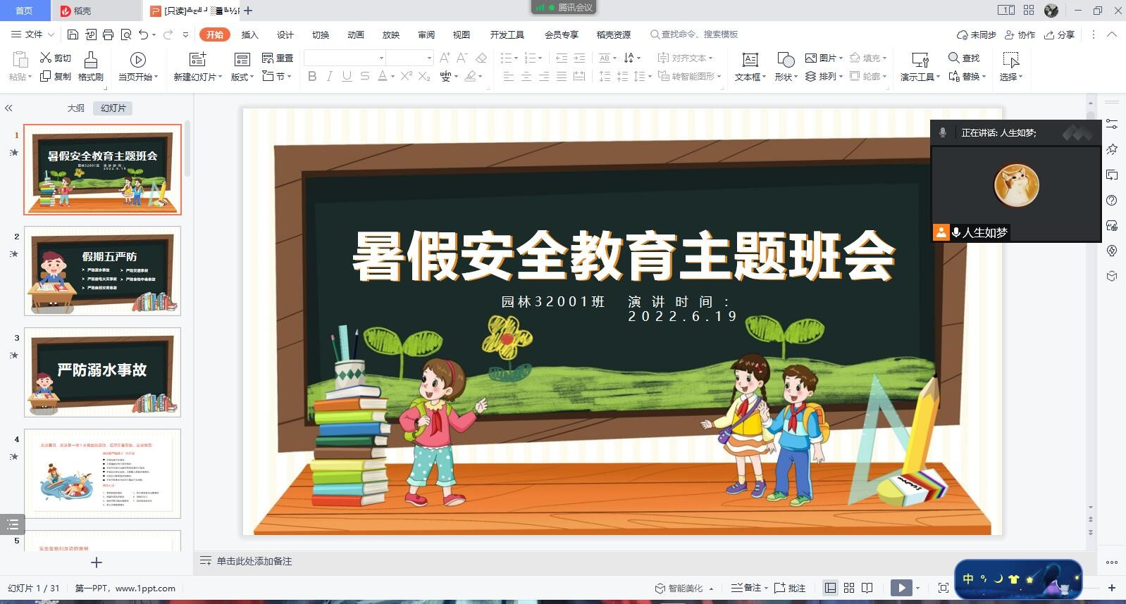 本次班会从暑期反诈、防溺水、疫情防控、食宿、交通等方面进行安全教育,加强学生在疫情防控、人身、财物、交通、饮食、防疫、反诈、防溺水、自然灾害以及政治安全等方面的专项教育。使大家自觉遵守法律法规,不接触、不参与传销、赌博、邪教、迷信等非法活动。强调暑假学生安全的重要性,并对暑期离校学生的安全管理进行着重强调,使同学们意识到日常生活中存在的危害情况,防患于未然,并向同学们提供了一些遇到这些危害时应采取的应对措施、积极进行自救的方法等,加强同学们的安全意识与疫情防控意识。要求暑假期间每周通过辅导猫对全体学生进行不少于两次的实时位置打卡,确实保证每一位同学的安全。