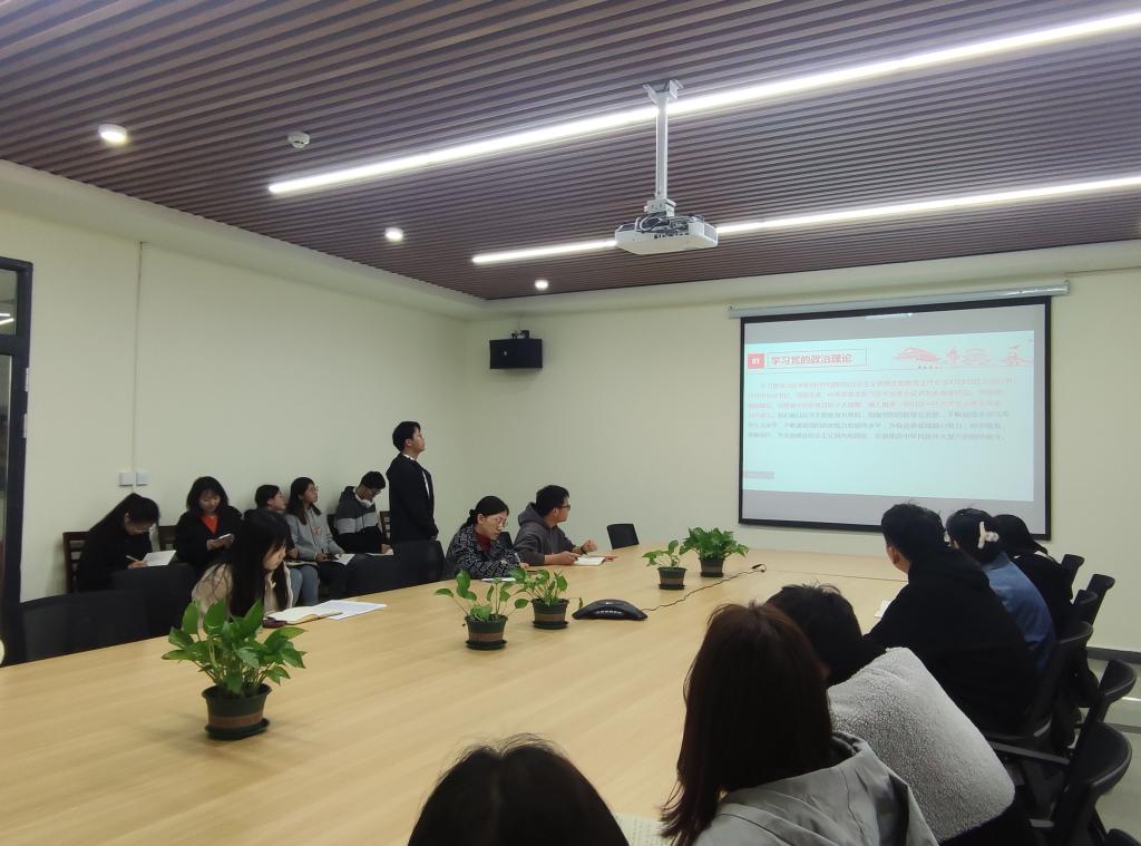 在四月主题党日活动中,宣传委员吴维佳同志带领大家深入学习《习近平发表重要讲话强调扎实抓好主题教育为奋进新征程凝心聚力》;共同观看了《习近平在中共中央政治局第四次集体学习时强调把学习贯彻新时代中国特色社会主义思想不断引向深入》视频;支部党员集体诵读《中国共产党章程》第四章党的地方组织相关内容;以及就作为一名学生党员,应当如何培养调查研究的能力展开主题讨论。