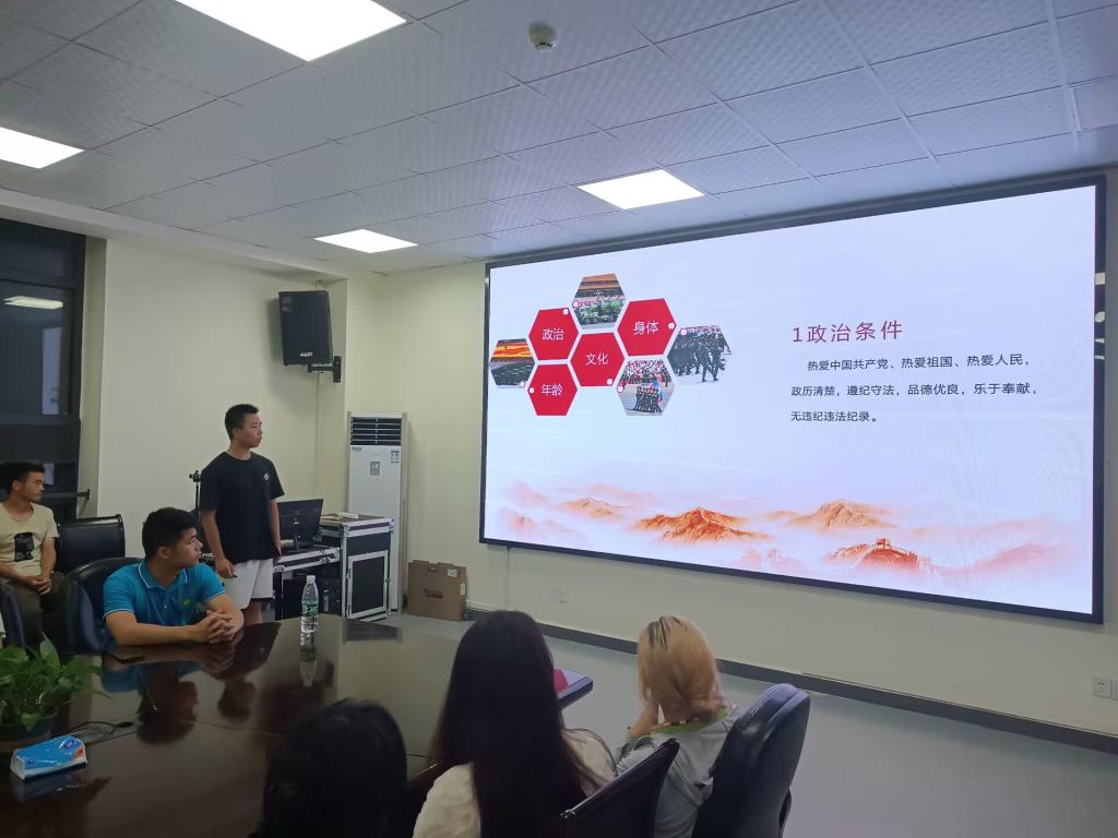 会议伊始,吴山老师首先就此次活动的意义进行了说明,旨在帮助同学们解答疑难问题,强调关心国防建设是青年大学生义不容辞的责任,大学生参军入伍对加快科技强军和精兵之路有着重大意义,同时,参军入伍是大学生实现报国志向的良好途径。