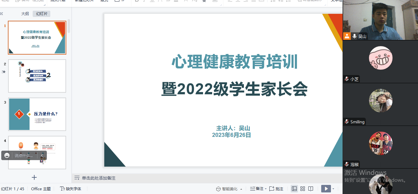党的二十大报告提出:“重视心理健康和精神卫生。”促进学生身心健康、全面发展,是群众关切、社会关注的重大课题。6月26日,学院在线上召开了本次心理健康教育专项行动,参与本次会议的有心理专干吴山老师、全体学生家长及在校本科生。