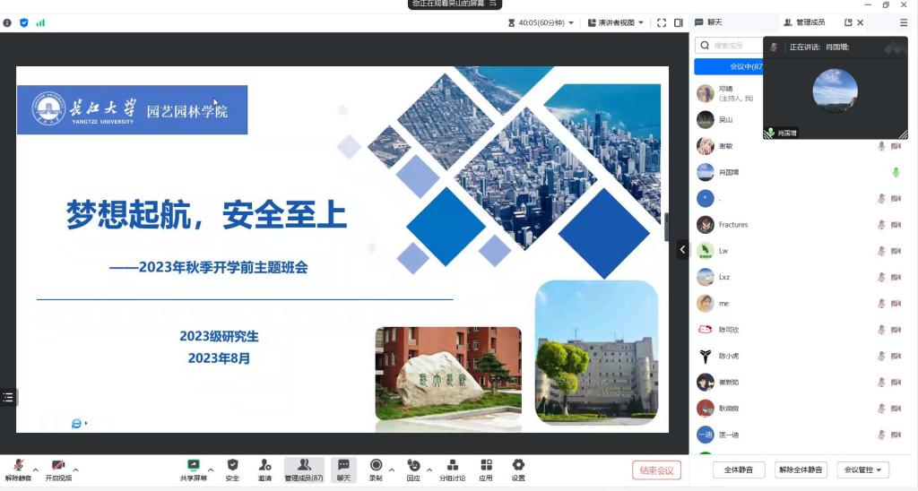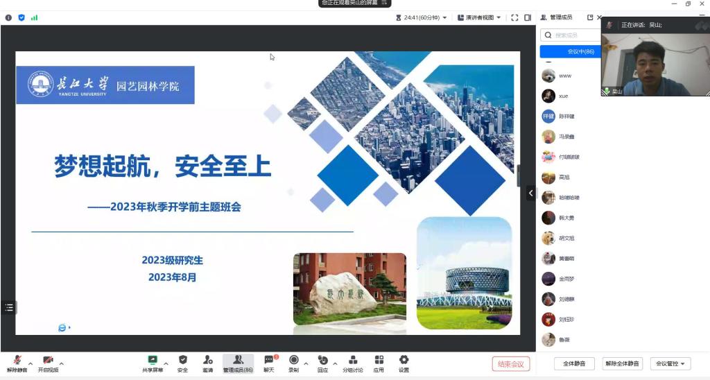 (通讯员:邓婧)闻着金秋的气息,迎着收获的季节,又步入新学期工作和学习的旅程。2023年8月24日上午10点,威廉williamhill组织2023级研究生线上召开以“梦想启航,安全至上”为主题的开学前主题班会。