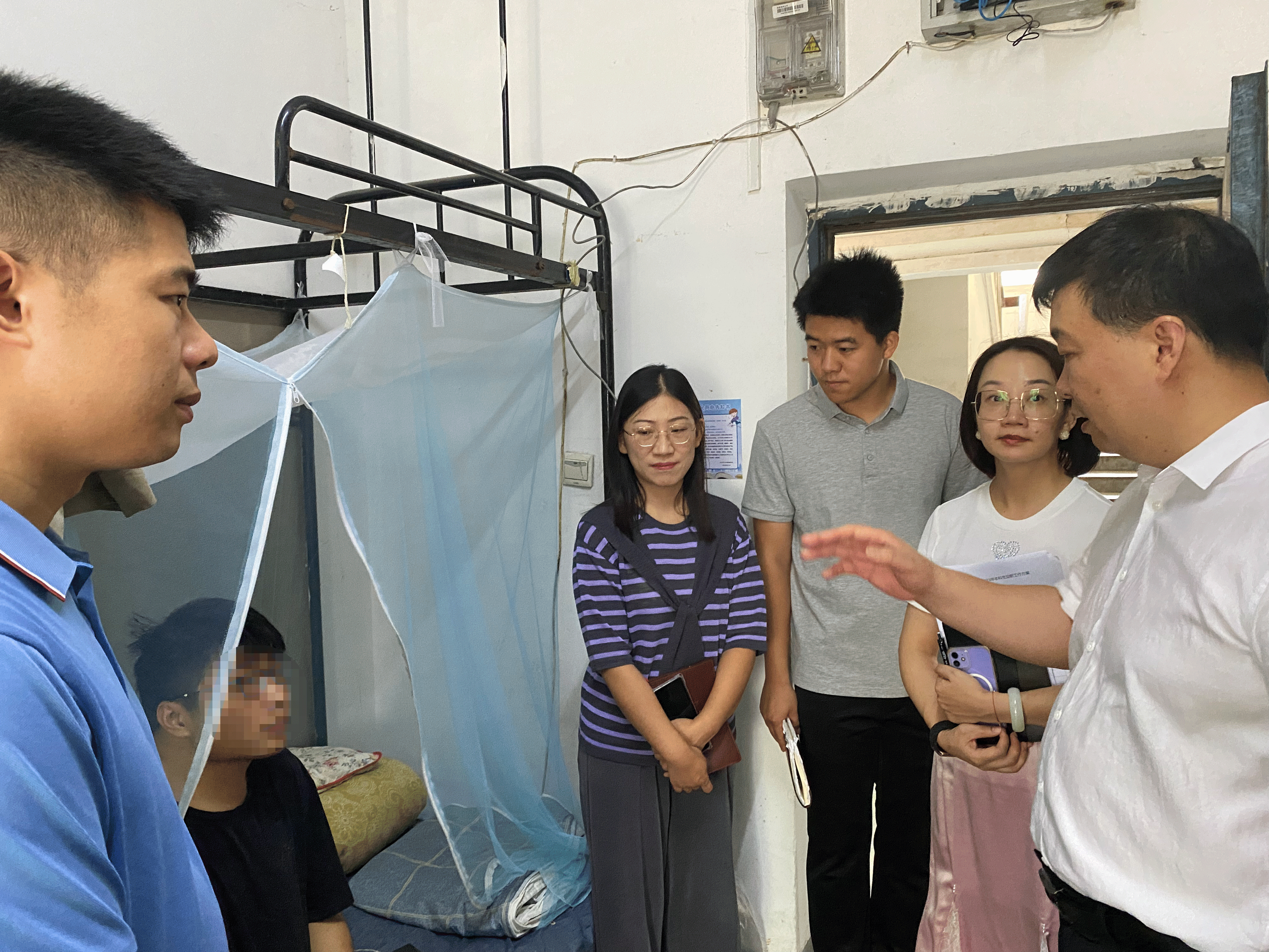 在河滨公寓辅导员办公室,张部长强调关爱困难学生是学校的一项重要工作,学校历来十分重视,希望学院要不断完善创新学生管理工作,利用好宿舍办公这个得天独厚的优势,充分细致了解开学等重点时期学生情况,通过辅导员、班主任进寝室、保持与寝室负责人密切联系、关注重点学生等方式,多措并举,及时了解第一手信息,第一时间关心解决学生遇到的困难和问题。