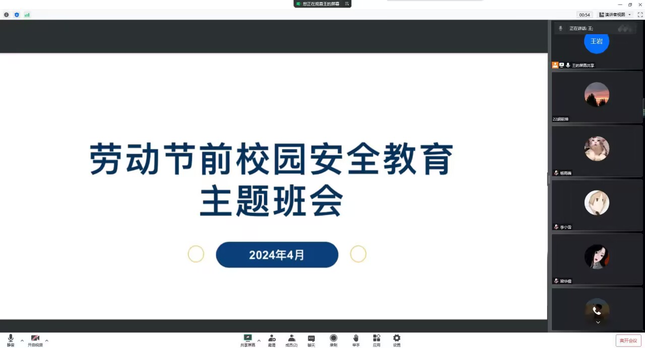 此外,会议上还提醒同学们假期中要保持联络通畅,如遇特殊情况或有特殊需求,要及时反映报告给家长及辅导员。