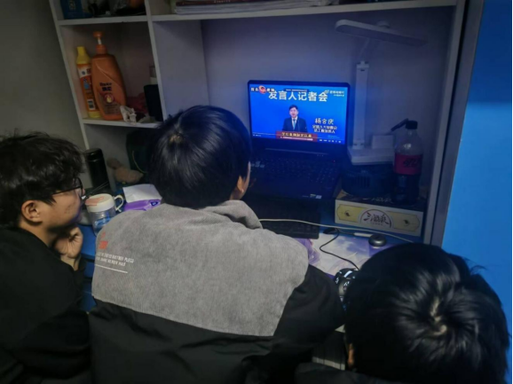 结合年级特点,学院组织大一大二年级以班级为单位集体学习,大三大四则以寝室为单位开展学习。