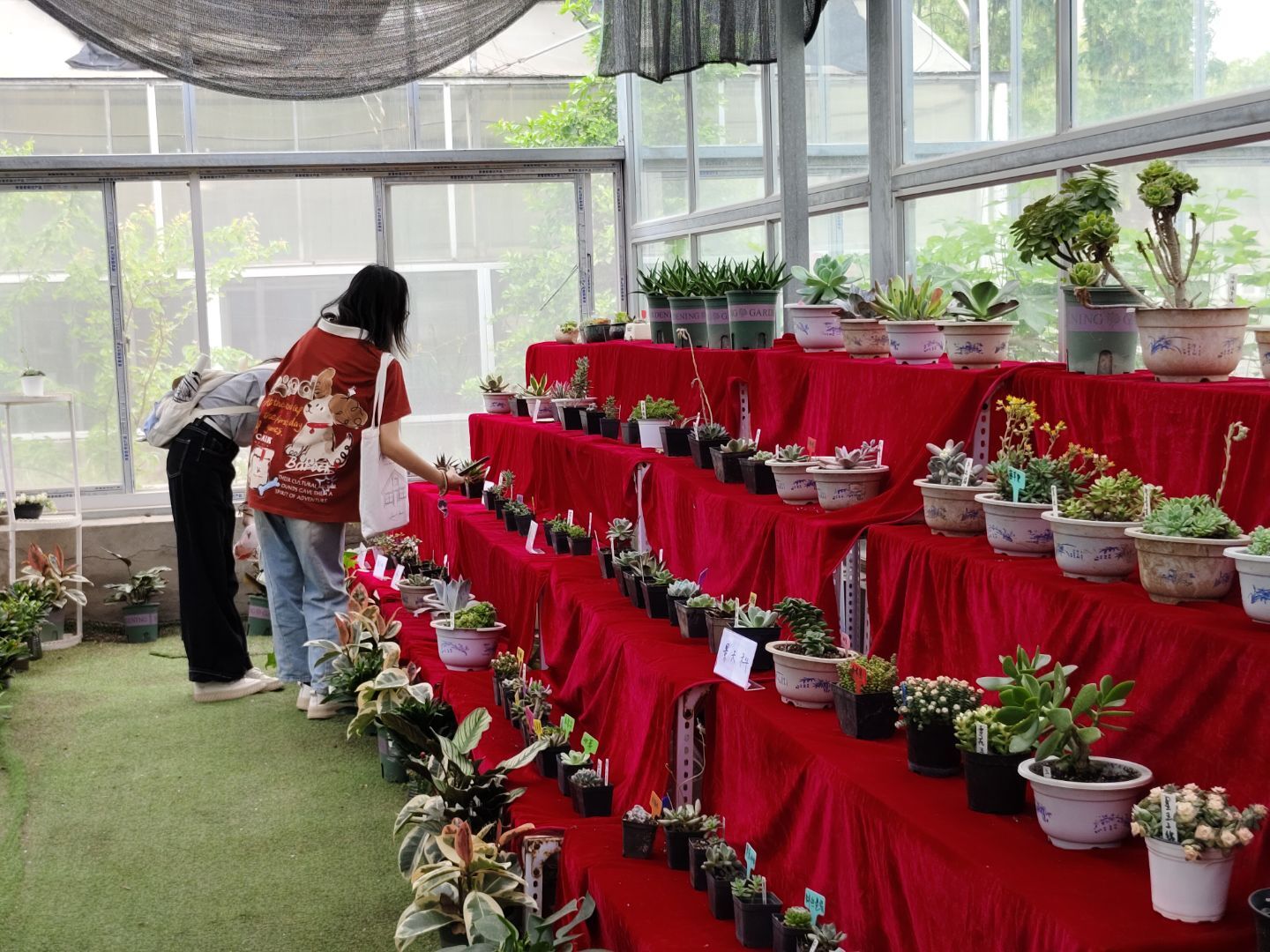 此外,科普区通过KT板系统呈现多肉五科属知识及扦插培育过程,组合盆栽展区展示园艺专业学生实习成果,图书阅读区提供多肉科普书籍供现场查阅,多维度传递园艺知识。据了解,主办方明宏创新创业团队深耕多肉选种繁育五年,此次展览既展现了学院专业教学成果,也为多肉爱好者搭建了交流平台。