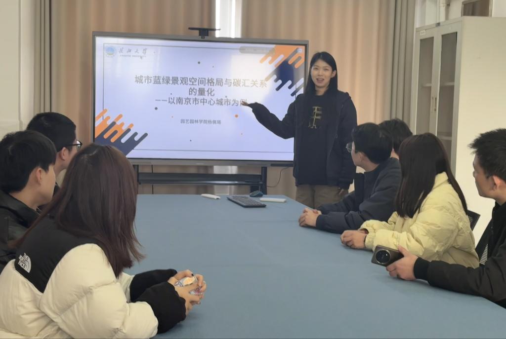 学术汇报环节,来自两院的研究生代表依次登台分享研究成果,展现了扎实的科研功底与创新的学术视角。来自威廉williamhill研究生杨佩瑶汇报主题为《城市蓝绿景观空间格局与碳汇关系的量化——以南京市中心城市为例》,该研究以南京市中心城区为对象,围绕蓝绿景观空间格局与碳汇的关联展开探究。针对以往城市碳汇研究多孤立关注蓝、绿空间,且缺乏中心城区蓝绿协同固碳机制分析的不足,确立了探究蓝绿空间协同碳汇影响、识别关键格局指标、提出空间规划优化方法三大目标。明确了蓝绿景观格局对碳汇的显著影响及协同作用,为中心城区蓝绿空间的规划、管理和生态修复提供了科学技术支撑。