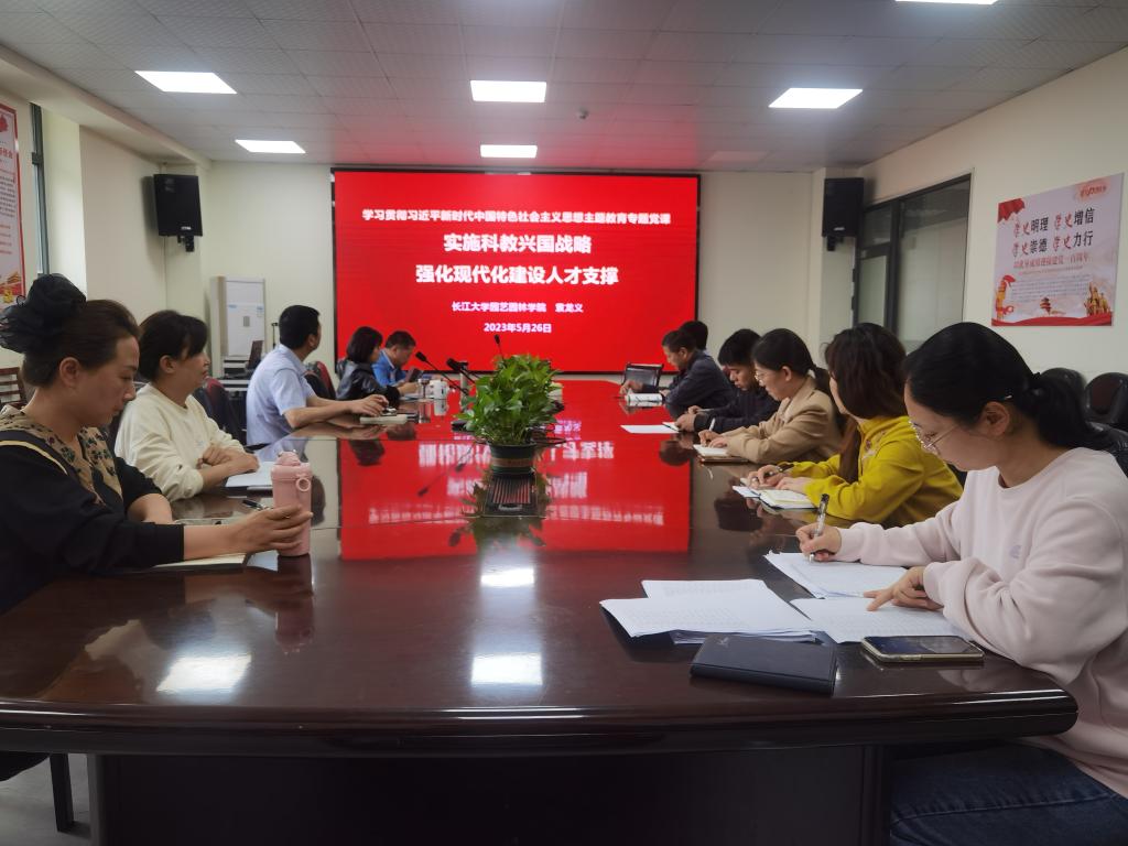 为了深入贯彻学习习近平新时代中国特色社会主义思想,2023年5月26日上午10时,威廉williamhill在农科大楼3002-A会议室开展了以“实施科教兴国战略,强化现代化建设人才支撑”为主题的专题党课学习。本次党课由威廉williamhill党委委员、学院副院长袁龙义同志主讲,本次授课对象为学院行政支部全体党员。