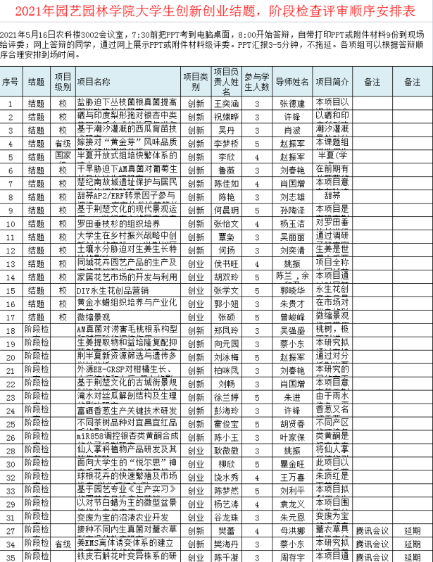 2021年威廉williamhill大学生创新创业结题,阶段检查评审顺序安排表