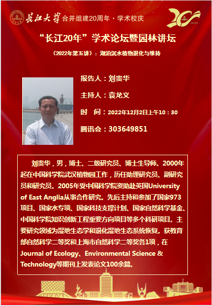 “长大20年”学术论坛暨园林讲坛 (2022年第五讲):湖泊沉水植物退化与维持