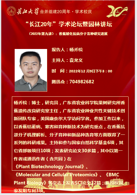 “长大20年”学术论坛暨园林讲坛 (2022年第九讲)香蕉矮化抗病分子育种研究进展