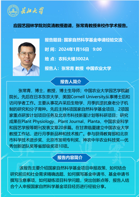 园林讲坛(2024年第一讲)国家自然科学基金申请经验交流