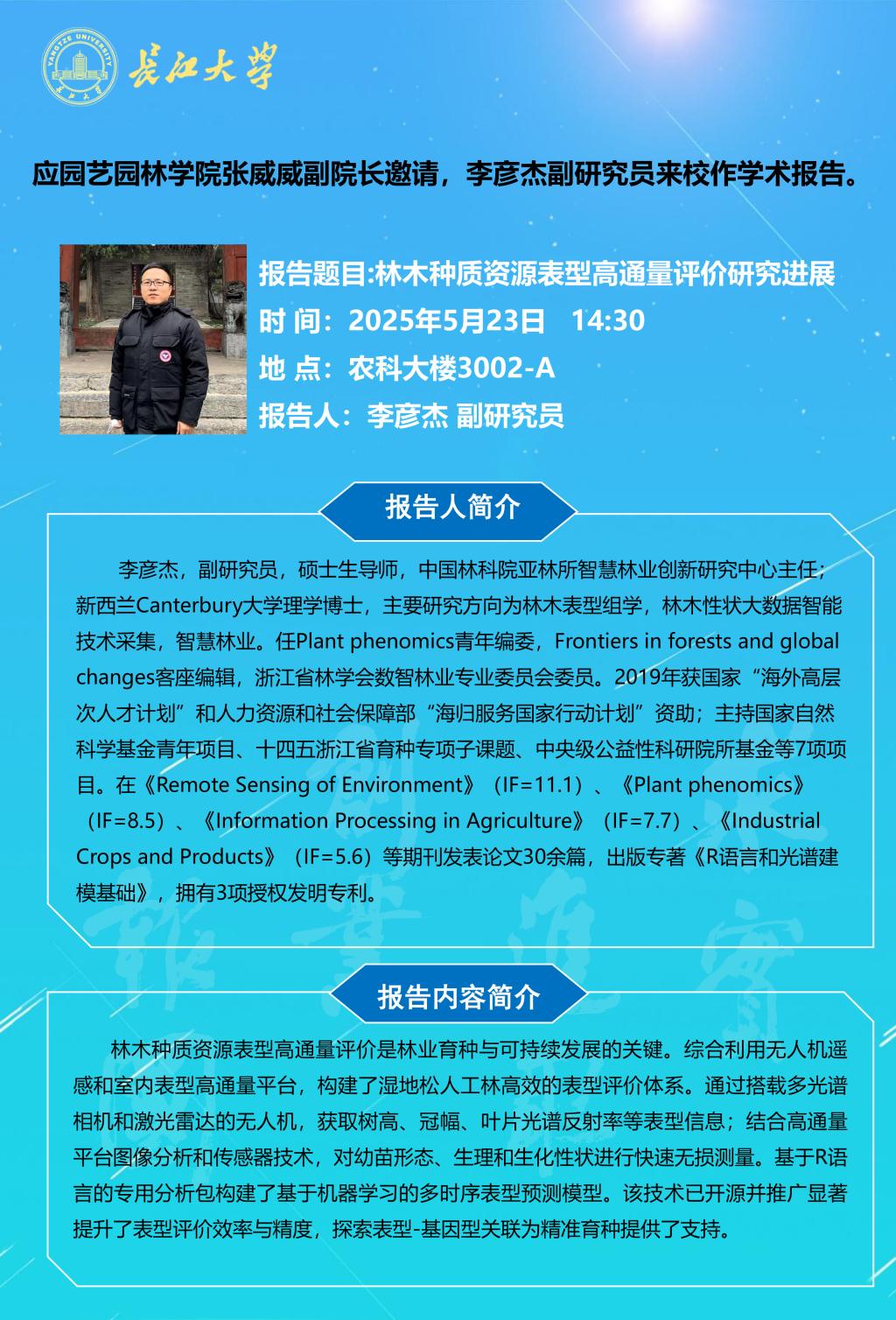 园林讲坛(2025年第十一讲):林木种质资源表型高通量评价研究进展
