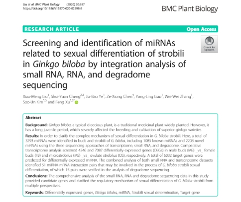 (通讯员 刘晓梦 何筱)2020年8月,我中心2019级博士研究生刘晓梦以第一作者身份在BMC Plant Biology期刊上发表了题为《Screening and identification of miRNAs related to sexual differentiation of strobili in Ginkgo biloba by integration analysis of small RNA, RNA, and degradome sequencing》(https://rdcu.be/b6sdL)(图1)的研究文章,该生导师许锋教授为通讯作者,威廉williamhill为第一署名单位。