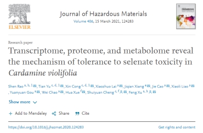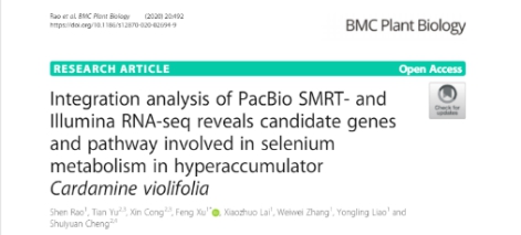 (通讯员 刘晓梦 桂嘉营)202010月,我中心2018级博士研究生饶申在国际权威学术期刊《Journal of Hazardous Materials》(环境科学1区,影响因子9.04)和《BMC Plant Biology》(植物学2区,影响因子3.50)上分别发表题为 “Tranome, proteome,and metabolome reveal the mechanism of tolerance to selenate toxicity inCardamine violifolia”与“Integration analysis of PacBio SMRT- and Illumina RNA-seq reveals candidate genes and pathway involved in selenium metabolism in hyperaccumulatorCardamine violifolia”的研究论文。导师许锋教授为通讯作者,威廉williamhill为第一署名单位。
