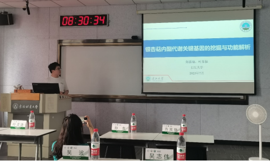 我中心博士研究生郑嘉瑞在青年科学家论坛分会场上以“银杏萜内酯代谢关键基因的挖掘与功能解析”为题,向参会专家汇报了本中心在银杏萜内酯方面的研究进展,与各位专家进行了讨论与交流。