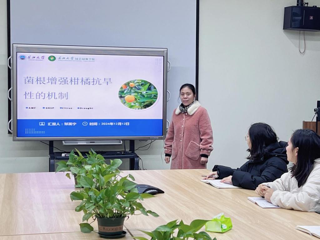 (通讯员 邹英宁)2024年12月12日,在学院会议室3002B举行了主题为“菌根增强柑橘抗旱性的机制”的学术讲座,邹英宁教授受邀作为主讲人为学院2022-2024级研究生进行讲授。