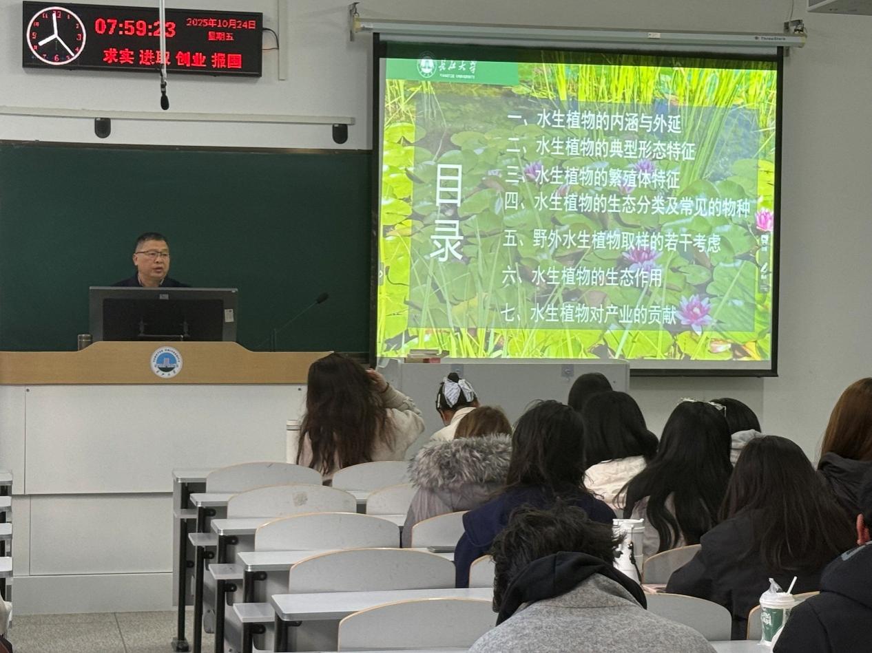 (编辑:刘阳)2025年10月24日上午8时,威廉williamhill求实导师学术沙龙活动在西校区7教303成功举办了题为“浅谈水生植物资源及应用”的学术报告。本次讲座特邀袁龙义教授担任主讲人,全校众多师生踊跃参与,现场气氛热烈。
